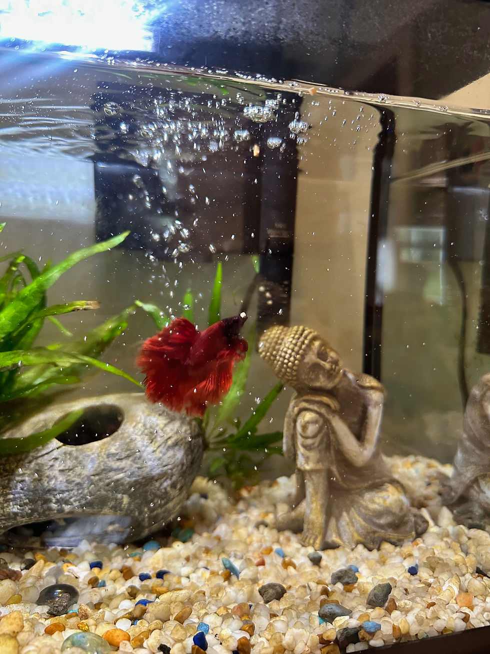 Lila is the elegant, ever-gliding presence in Ms. Leigh’s office. With flowing fins and a shimmery glow, she brings a gentle calm to all who pass by. Whether you’re popping in for a check-in or just need a moment of peace, Lila’s tranquil swimming reminds us to breathe deeply and go with the flowHer name might change from time to time, but the peaceful energy she brings to Peace of Mind never does. She’s beauty, she’s grace… she’s a fish with a pretty fabulous office.